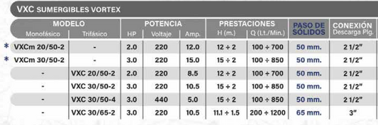 Pedrollo Sumergibles Vortex VXC 30/50-2