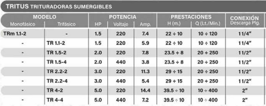 Pedrollo Tritus Trituradoras Sumergibles TR 1.1-2