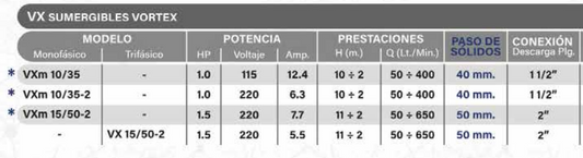 Pedrollo VX Sumergibles Vortex VXm 10/35