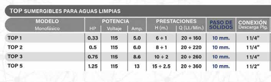 Electrobomba sumergible de drenaje PEDROLLO TOP 1