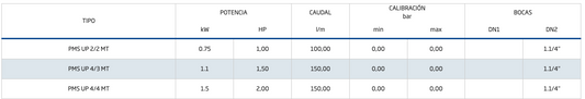 PUMP MASTER UP Sistema de presión a velocidad variable PMS UP 4/3 MT