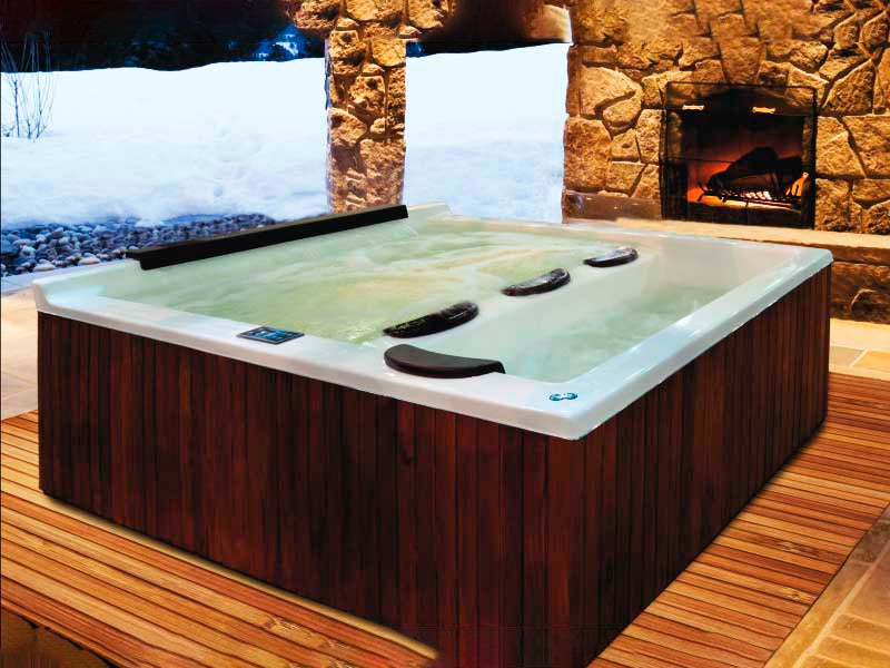 Tina de jardín de amplias dimensiones, para disfrutar con la familia y olvidarse del estrés. Su equipo de última generación mantiene el agua limpia y con la temperatura adecuada.